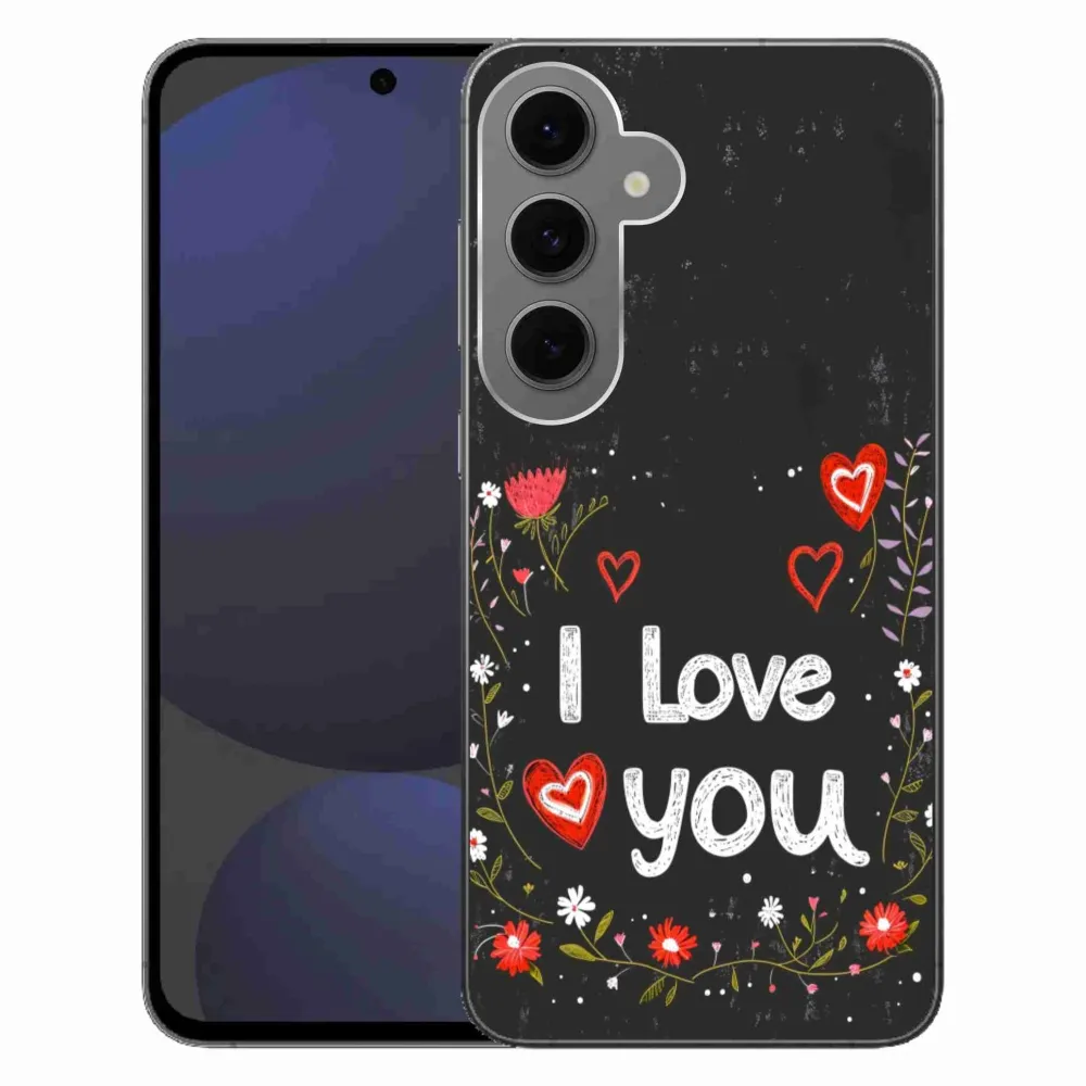 Rugalmas zselés tok mmCase kép Samsung Galaxy S24 FE - I love you fekete háttérrel