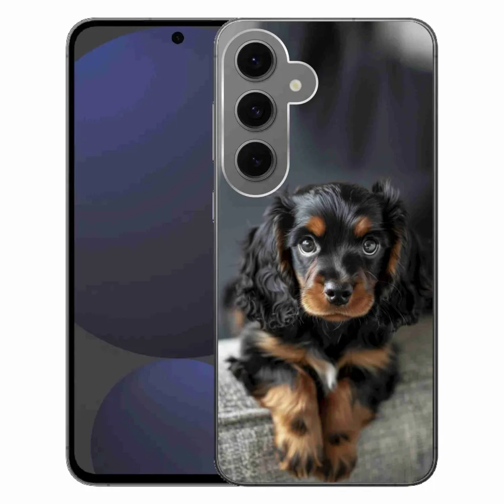 Rugalmas kesztyű tok mmCase a Samsung Galaxy S24FE képével - aranyos hosszú szőrű tacskó