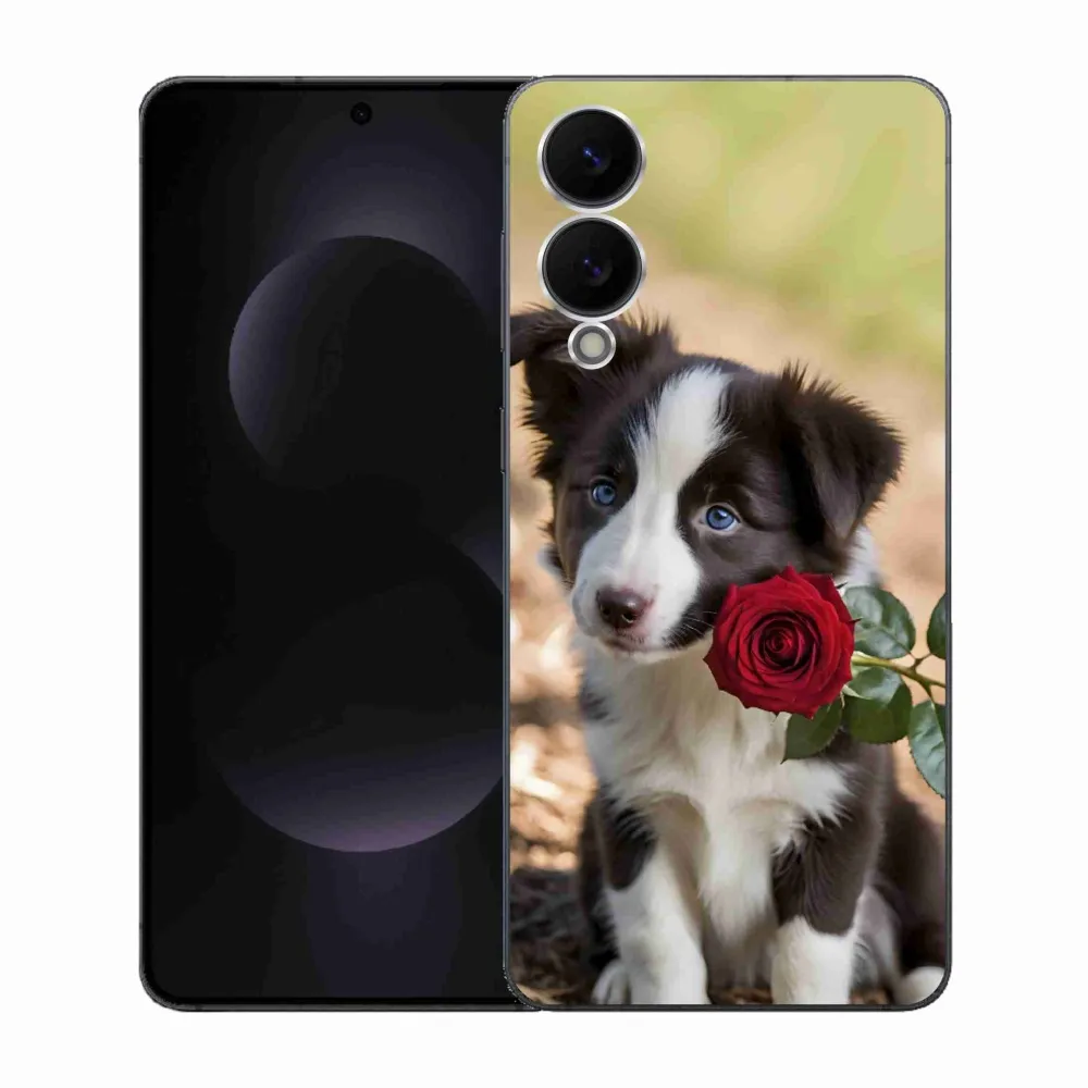 Rugalmas kesztyű tok mmCase a Samsung Galaxy S25 Edge képével - aranyos border collie rózsával