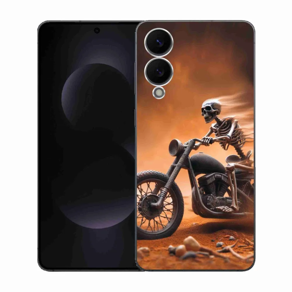 Rugalmas zselés tok mmCase kép Samsung Galaxy S25 Edge - csontváz egy motorkerékpárra