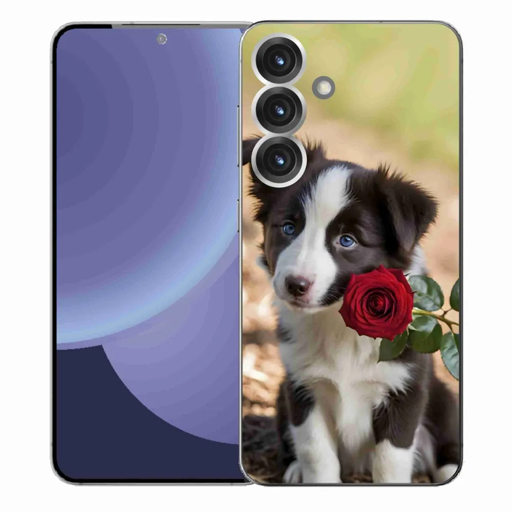 Gél borítás mmCase Samsung Galaxy S25+ készülékhez - aranyos border collie rózsával