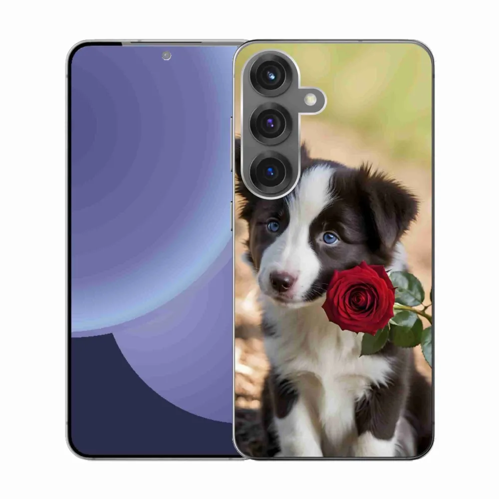 Gél borítás mmCase Samsung Galaxy S25 készülékhez - aranyos border collie rózsával