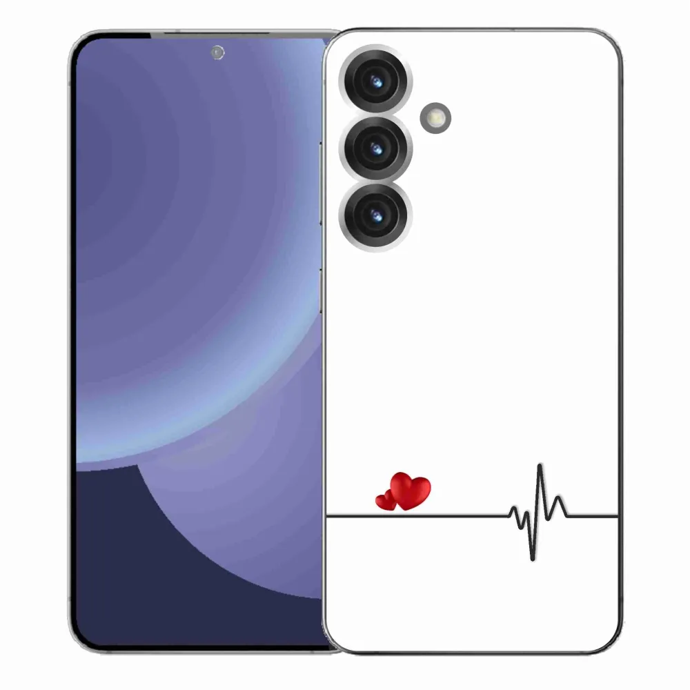Rugalmas zselés tok mmCase kép Samsung Galaxy S25+ - szív és szívverés fehér háttérrel