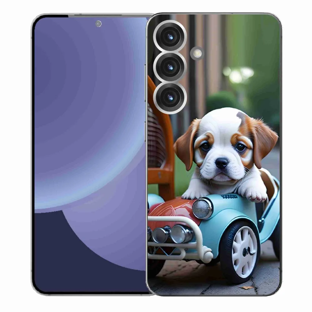 Gél borítás mmCase Samsung Galaxy S25+ - kiskutya retro autóban