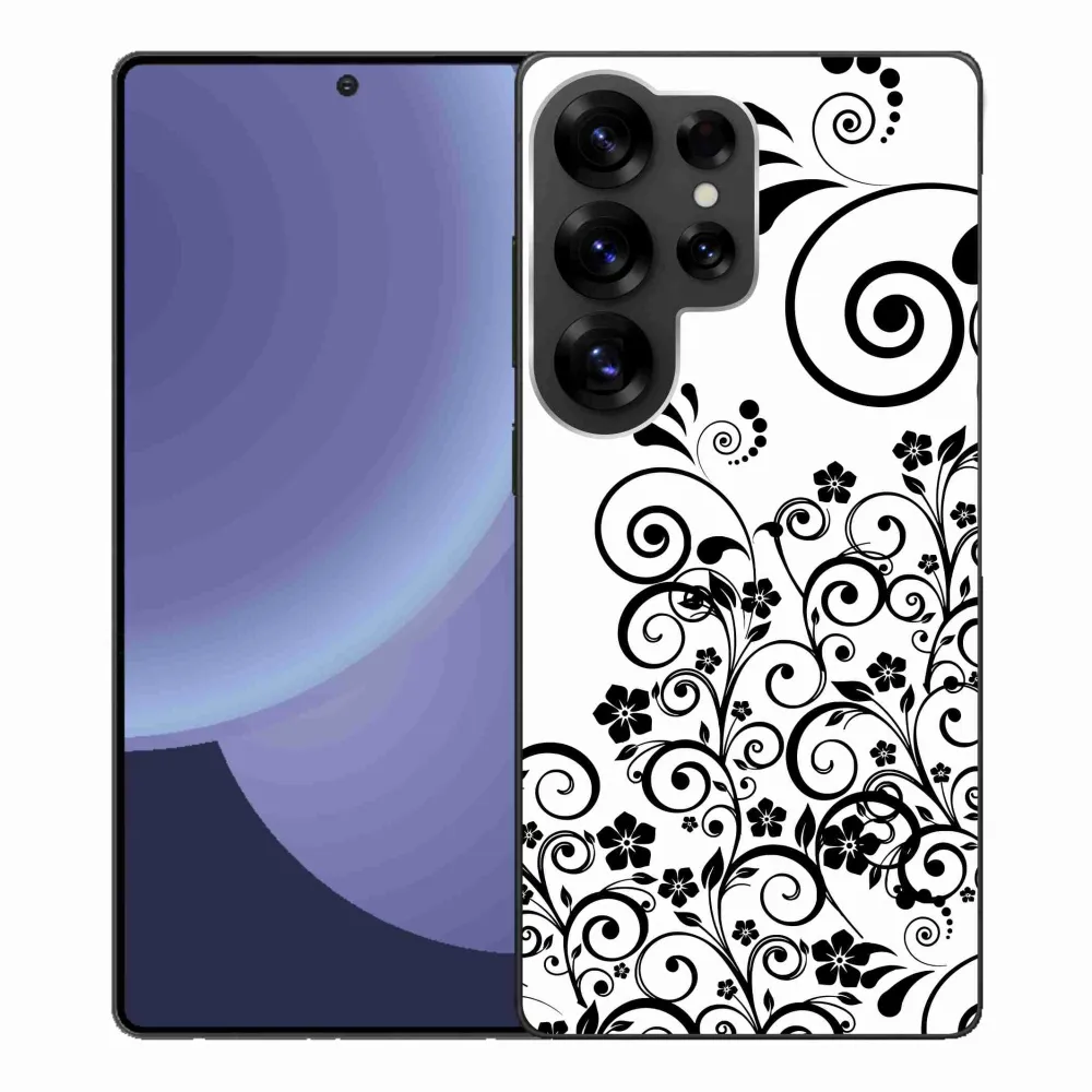 Rugalmas gél tok mmCase kép Samsung Galaxy S25 Ultra - fekete és fehér virágmintás tok - fekete és fehér virágminták