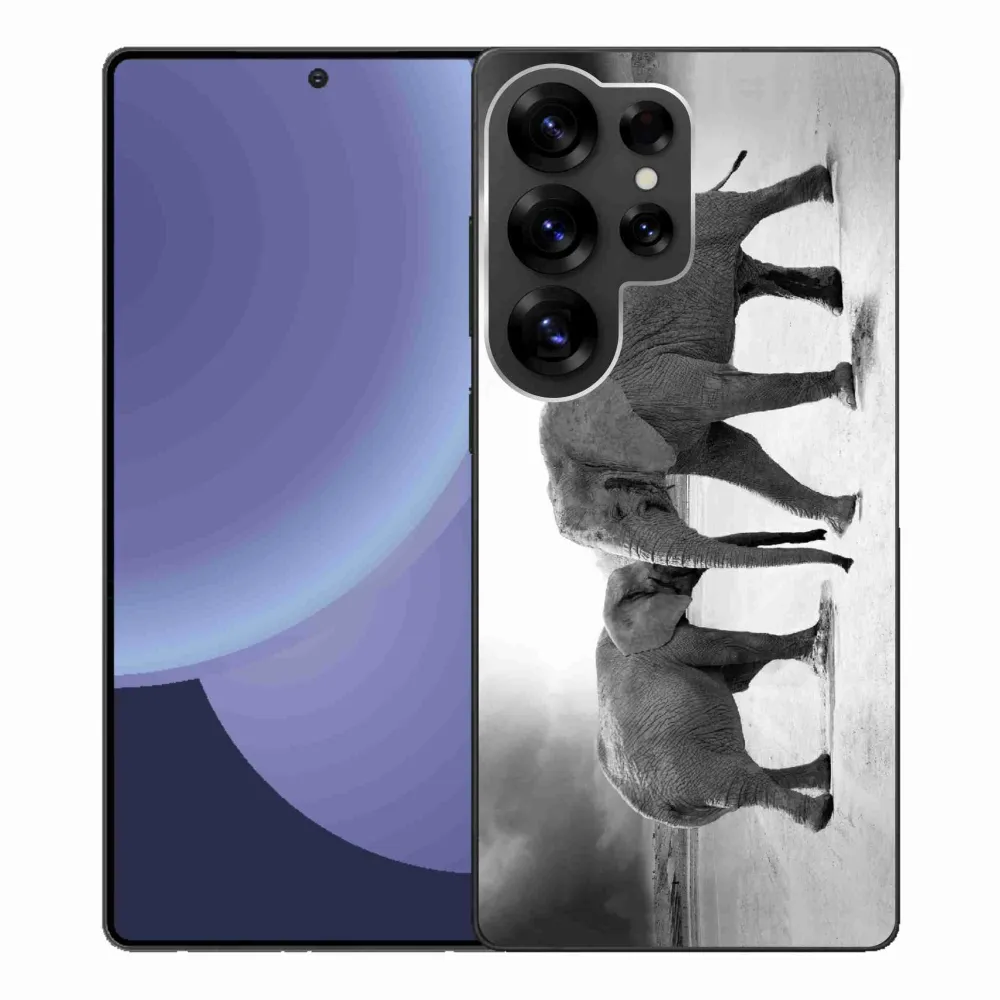 Rugalmas gél tok mmCase kép Samsung Galaxy S25 Ultra - fekete-fehér elefántok képével