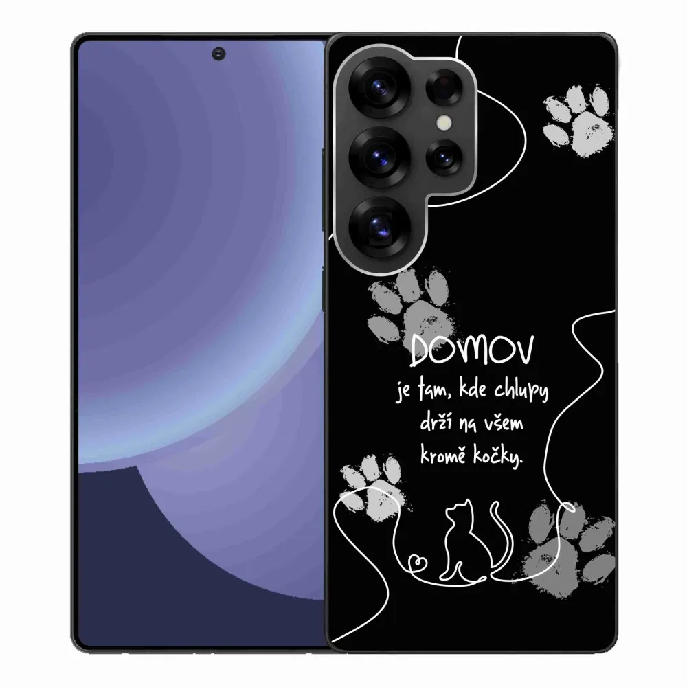 Rugalmas zselés tok mmCase kép Samsung Galaxy S25 Ultra - macska motívum fekete háttérrel