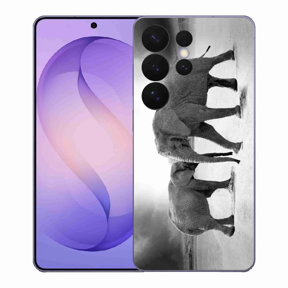 Rugalmas gél tok mmCase kép Samsung Galaxy S26 Ultra - fekete-fehér elefántok képével