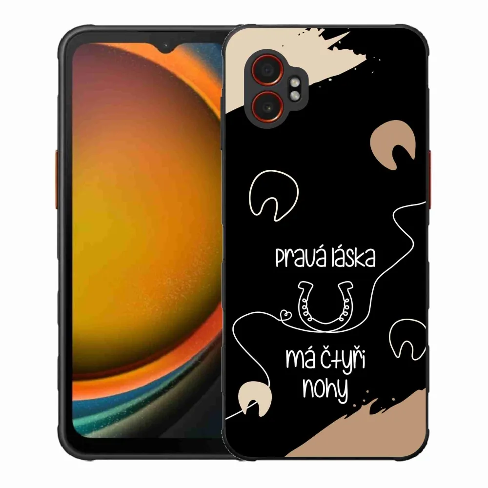 Rugalmas zselés tok mmCase a Samsung Galaxy Xcover 7 Pro képével - ló motívum fekete háttérrel