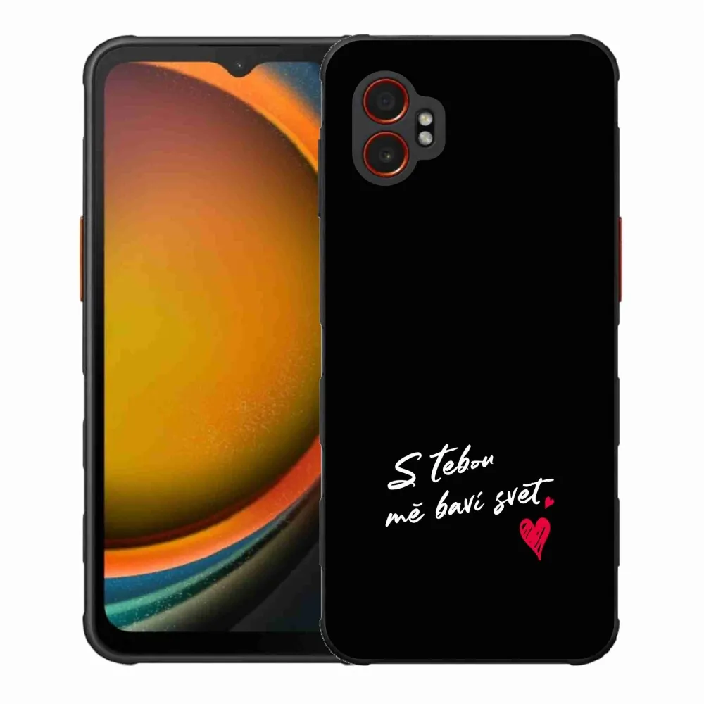 Rugalmas zselés tok mmCase kép Samsung Galaxy Xcover 7 Pro - szöveg szerelemben 1 fekete háttérrel