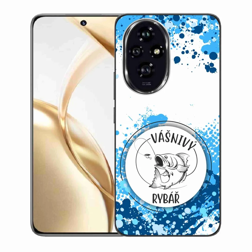 Rugalmas zselés tok mmCase képpel a Honor 200 5G számára - szenvedélyes halász fehér háttérrel