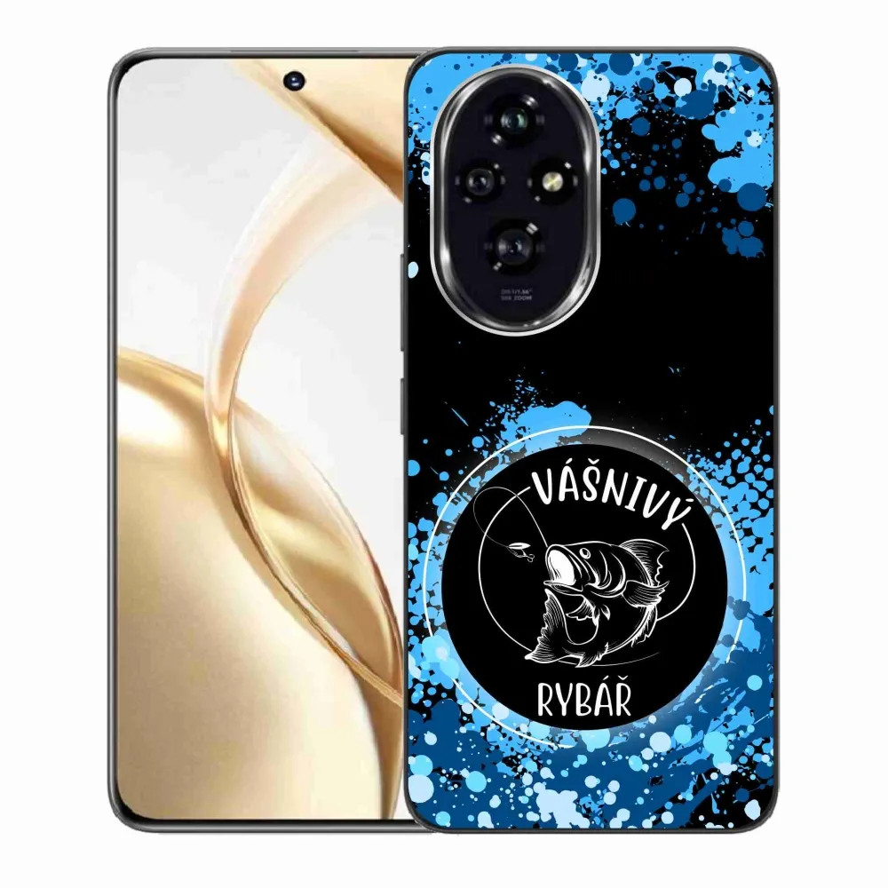 Rugalmas zselés tok mmCase képpel a Honor 200 5G számára - szenvedélyes halász fekete háttérrel