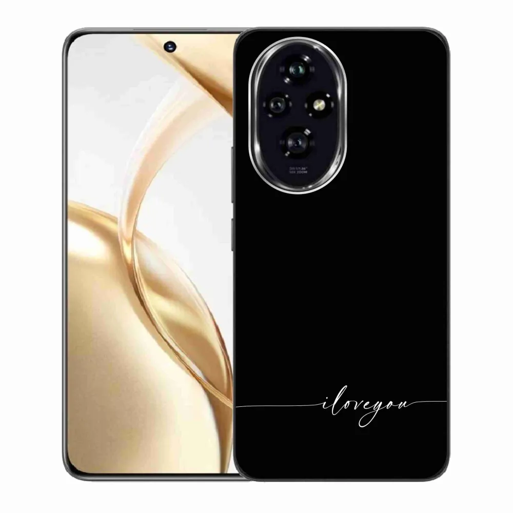 Rugalmas zselés tok mmCase a Honor 200 5G képével - I love you fekete háttérrel