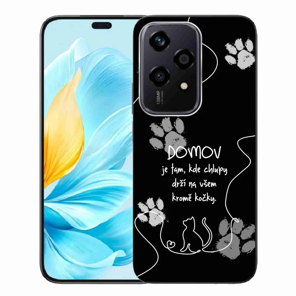 Gél borító mmCase a Honor 200 Lite 5G készülékhez - macska motívum fekete háttérrel