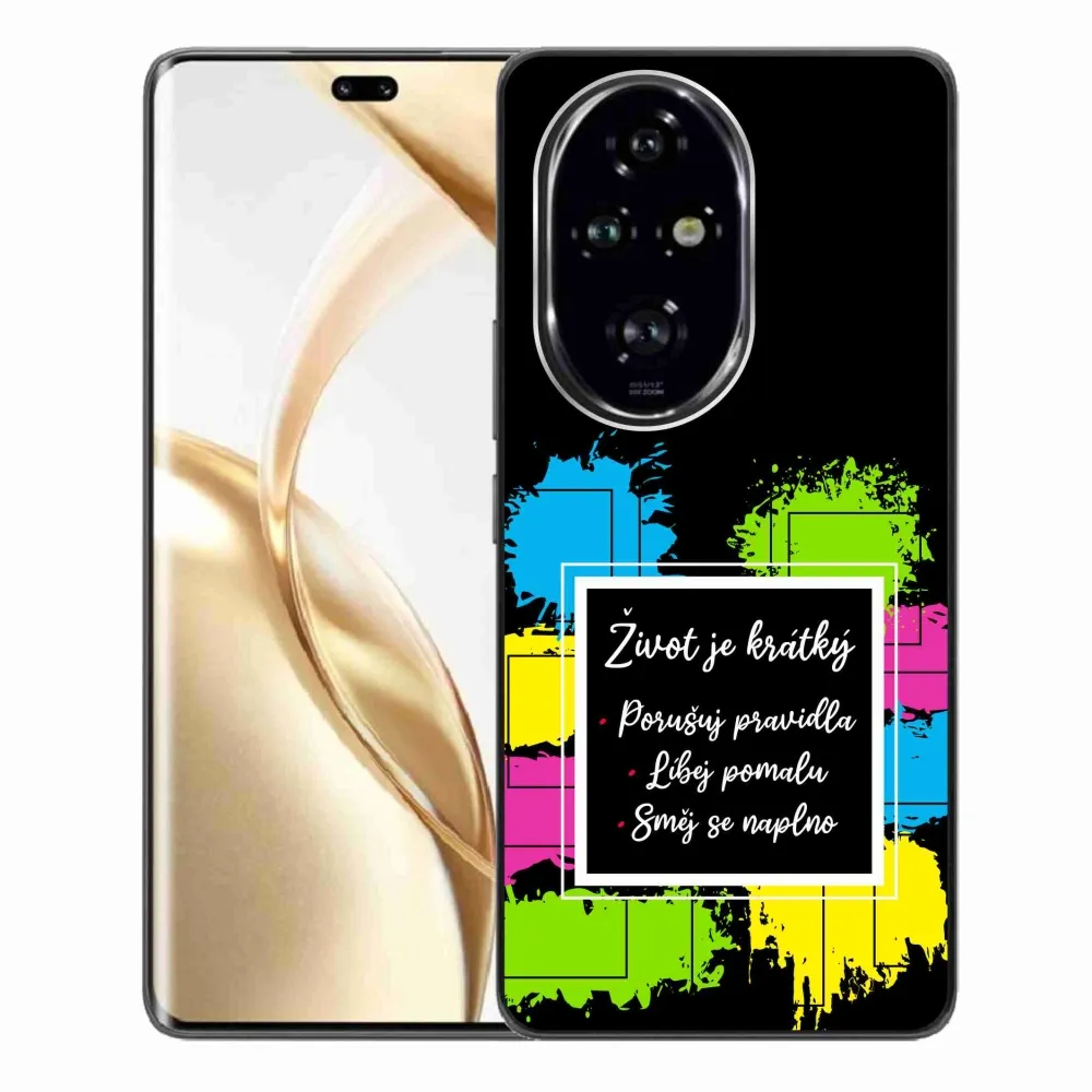 Rugalmas zselés tok mmCase a Honor 200 Pro 5G képével - idézet 5 fekete háttérrel
