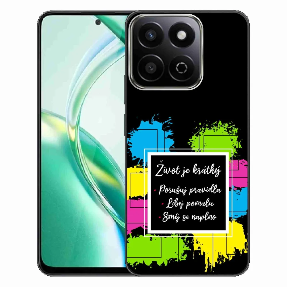 Rugalmas zselés tok mmCase a Honor 200 Smart 5G képével - idézet 5 fekete háttérrel