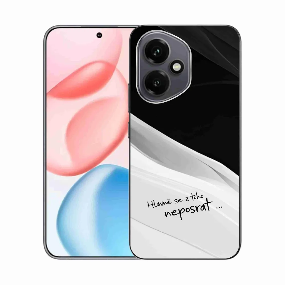 Rugalmas zselés tok mmCase kép a Honor 400-on - vicces szöveg 13 fekete-fehér háttérrel