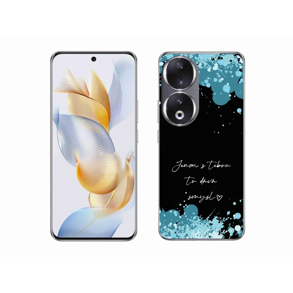 Rugalmas zselés borító mmCase kép a Honor 90 - szerelem szöveg fekete háttérrel