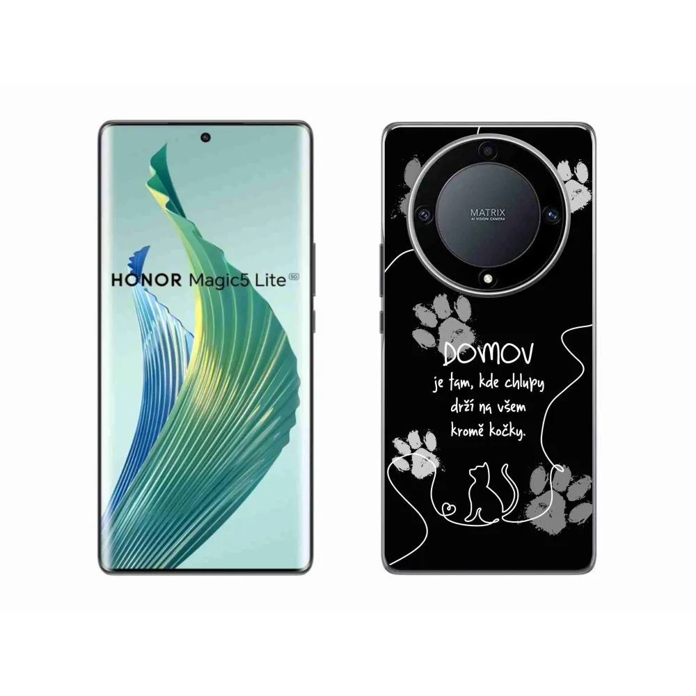 Gél borító mmCase a Honor Magic 5 Lite 5G készülékhez - macska motívum fekete háttérrel