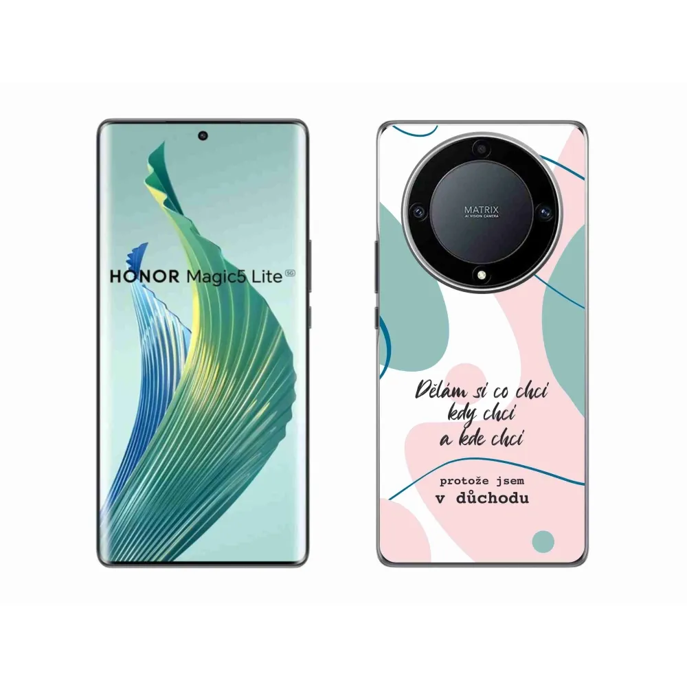 Rugalmas zselés tok mmCase a Honor Magic 5 Lite 5G képével - vicces szöveg 10 fehér háttérrel