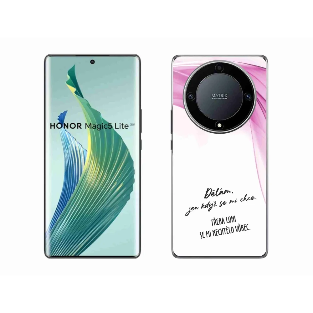 Rugalmas zselés tok mmCase a Honor Magic 5 Lite 5G képével - vicces szöveg 12 fehér háttérrel