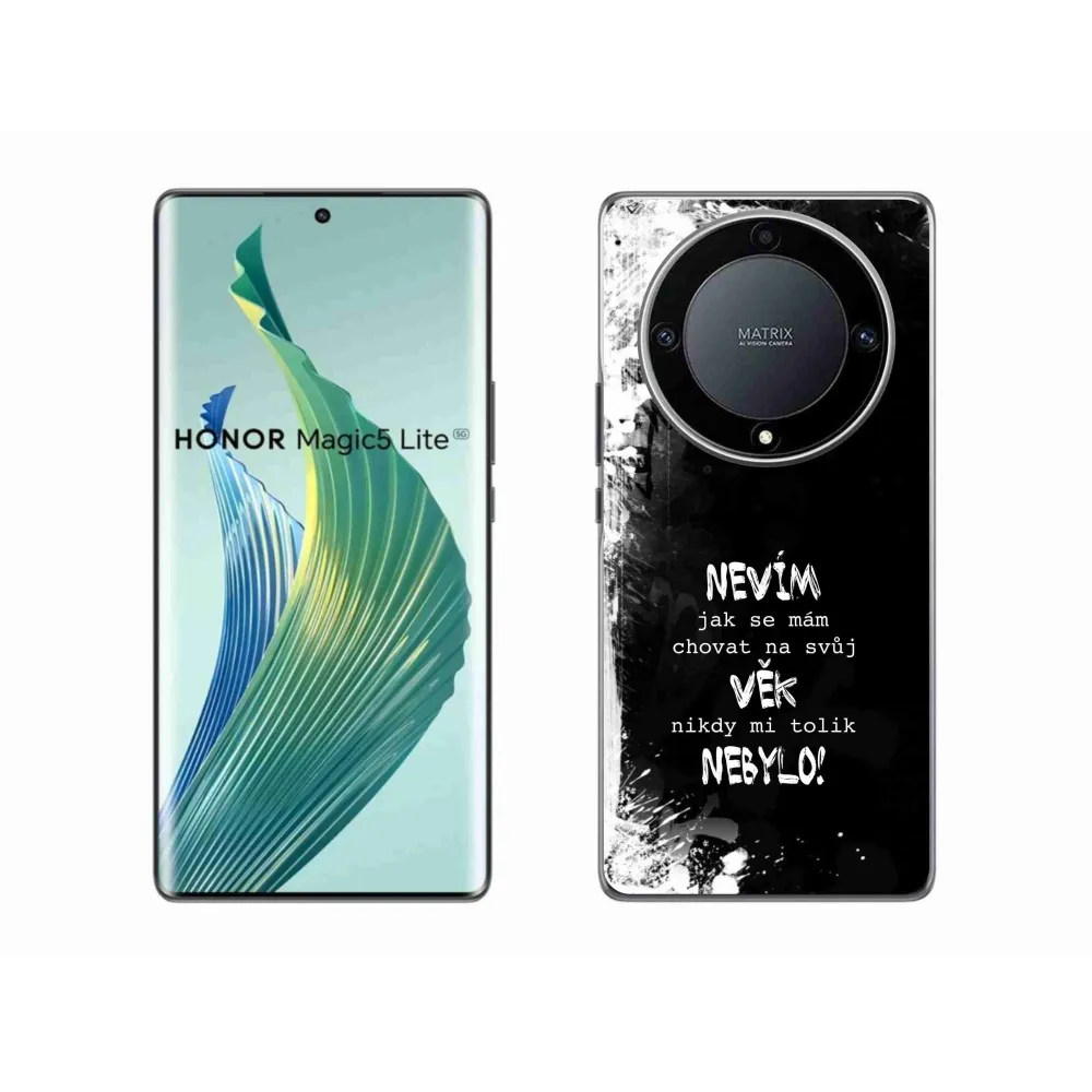 Rugalmas zselés tok mmCase a Honor Magic 5 Lite 5G képével - vicces szöveg 14 fekete háttérrel