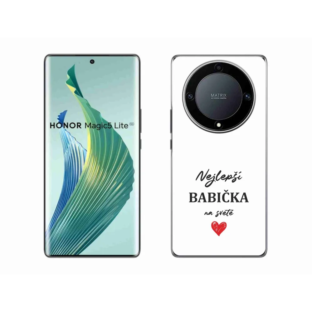 Rugalmas zselés tok mmCase a Honor Magic 5 Lite 5G képével - Best Grandma 1 fehér háttérrel