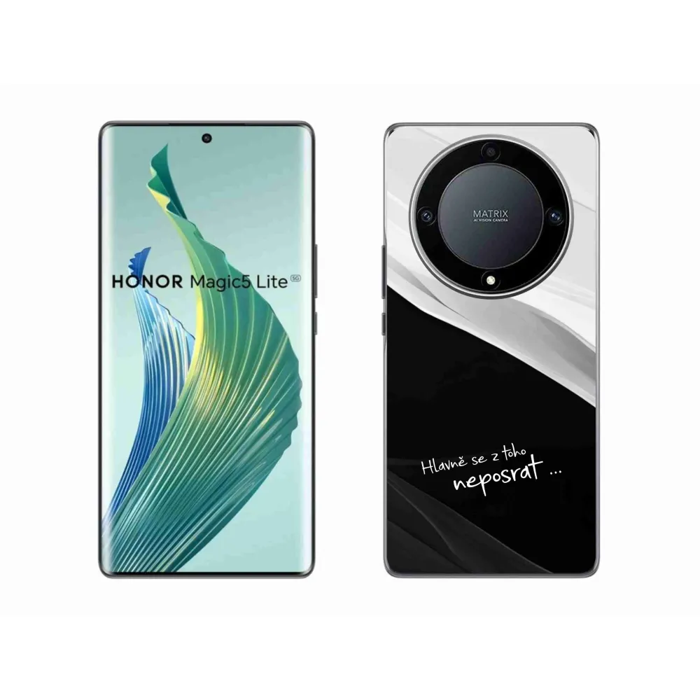 Rugalmas zselés tok mmCase a Honor Magic 5 Lite 5G képével - vicces szöveg 13 fekete-fehér háttérrel