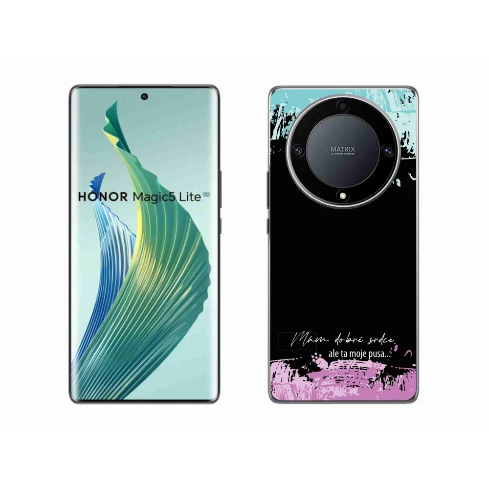 Rugalmas zselés tok mmCase a Honor Magic 5 Lite 5G képével - vicces szöveg 3 fekete háttérrel
