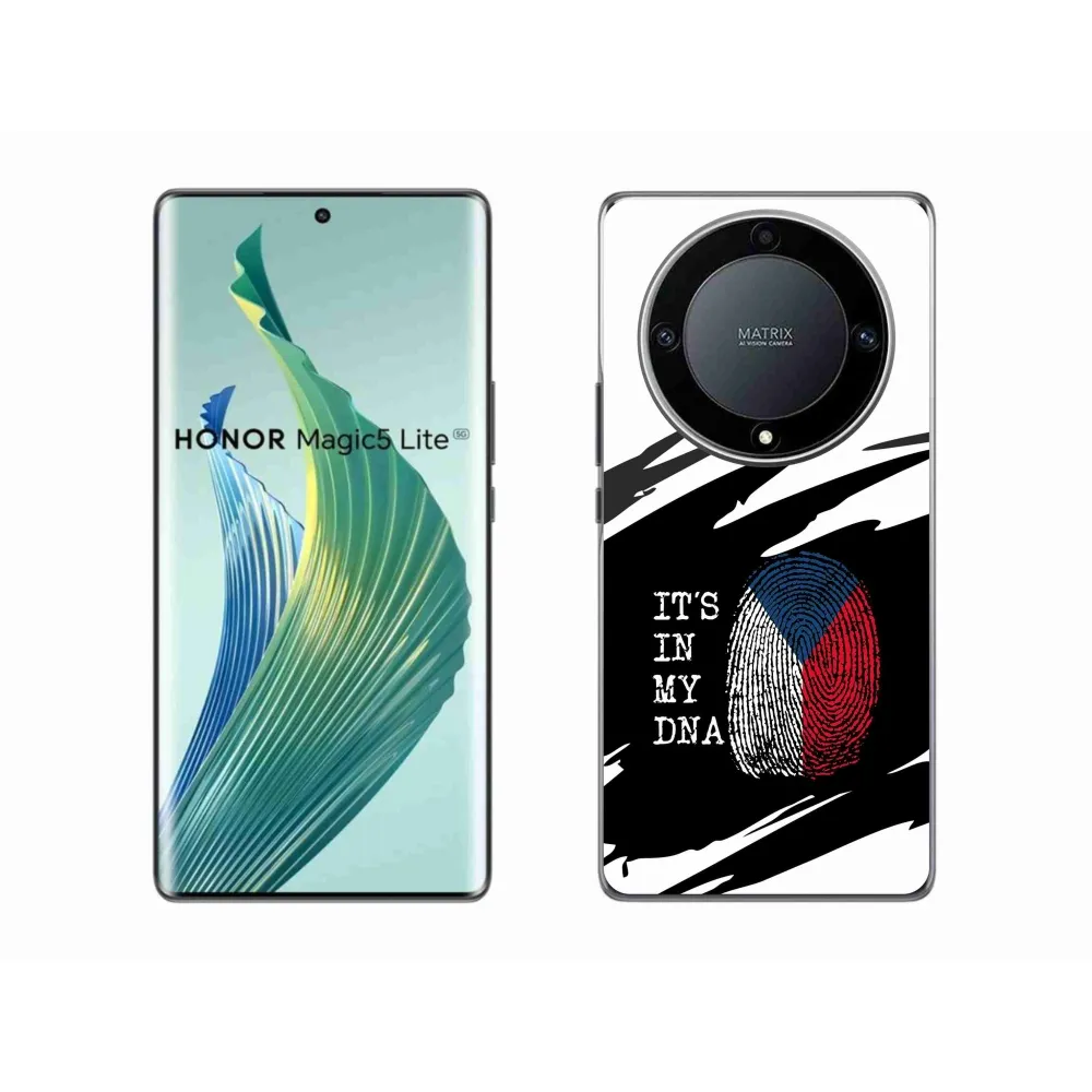 Rugalmas zselés tok mmCase a Honor Magic 5 Lite 5G képével - zászlós ujjlenyomat fekete és fehér háttérrel