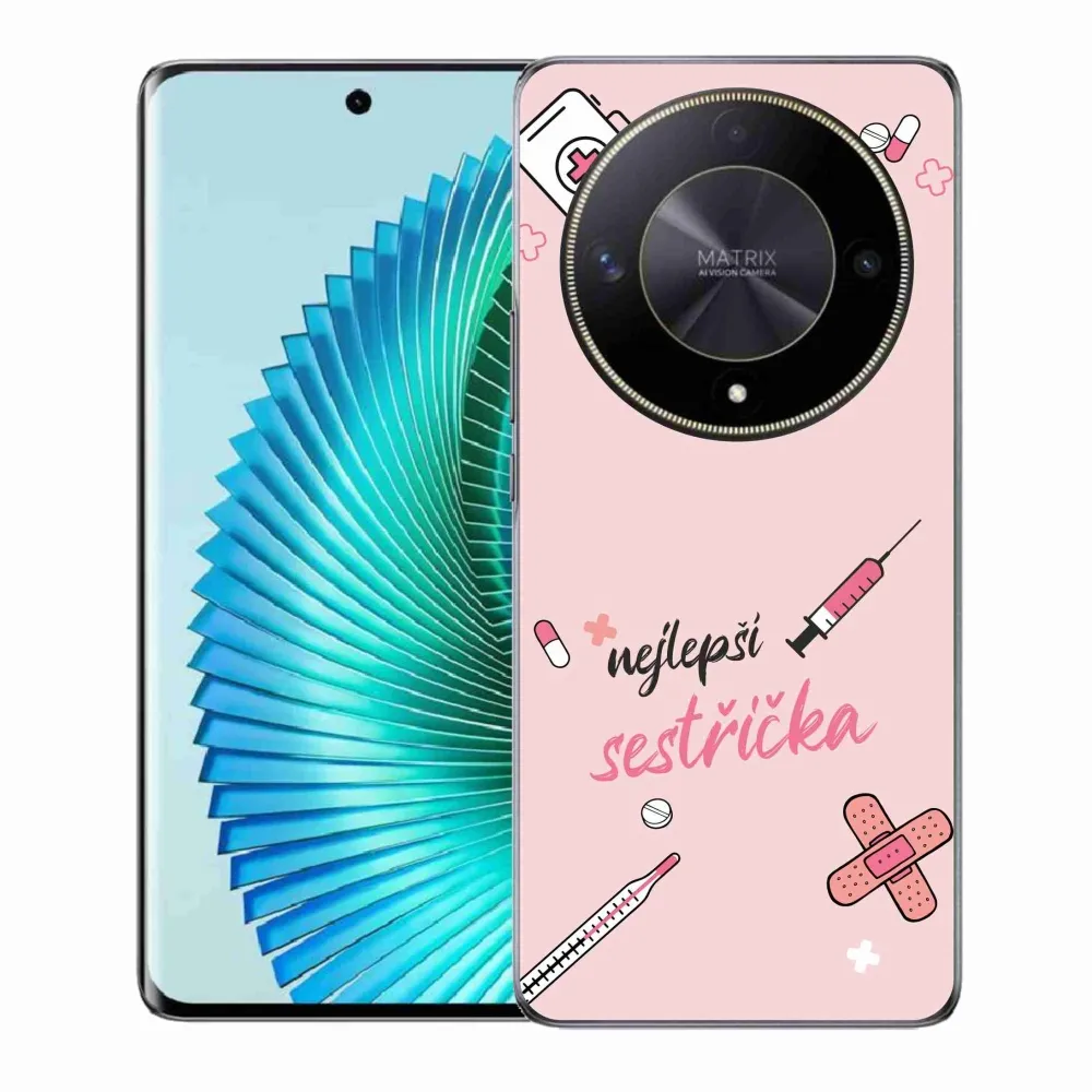Rugalmas zselés tok mmCase a Honor Magic 6 Lite 5G képével - a legjobb kishúg rózsaszín háttérrel