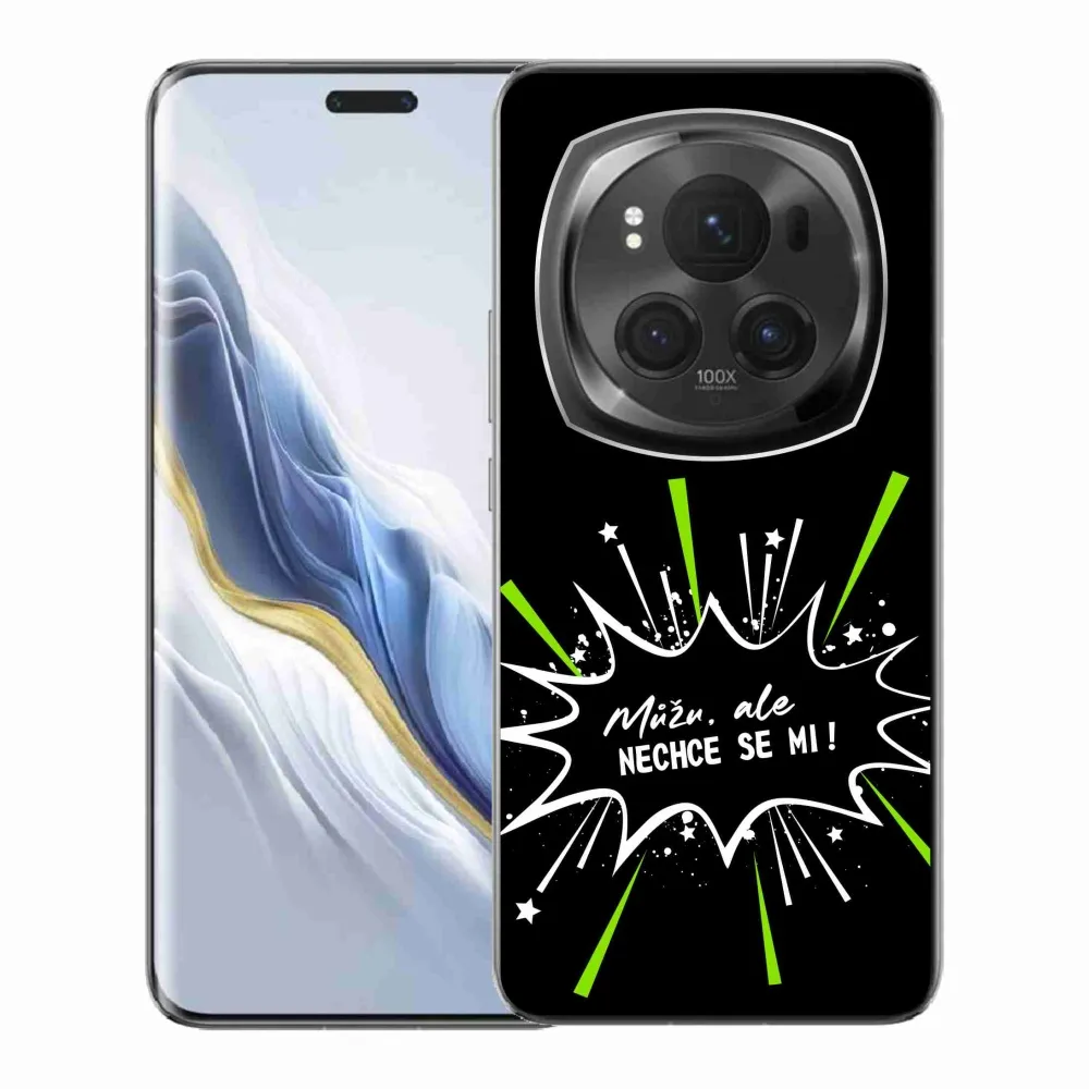 Rugalmas zselés tok mmCase a Honor Magic 6 Pro 5G képével - vicces szöveg 11 fekete háttérrel