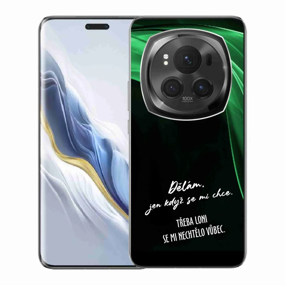 Rugalmas zselés tok mmCase a Honor Magic 6 Pro 5G képével - vicces szöveg 12 fekete háttérrel