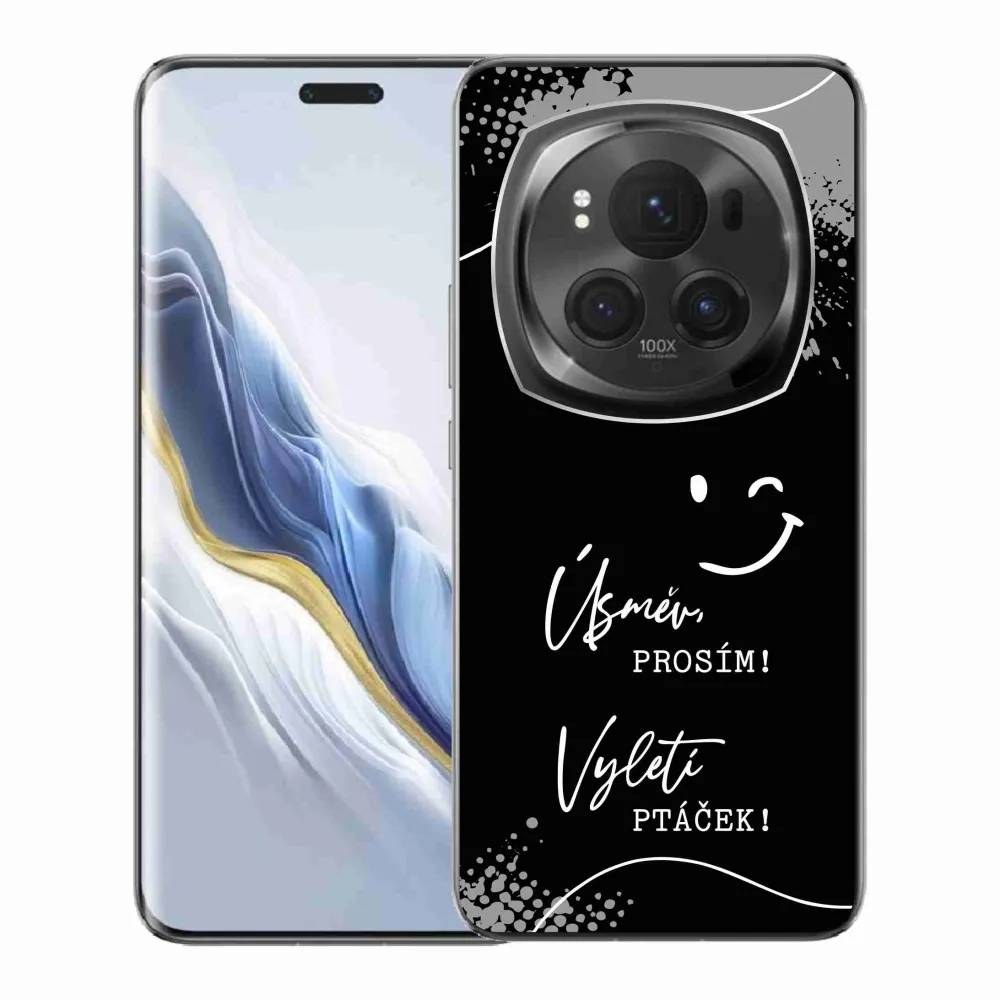 Rugalmas zselés tok mmCase a Honor Magic 6 Pro 5G képével - vicces szöveg 4 fekete háttérrel