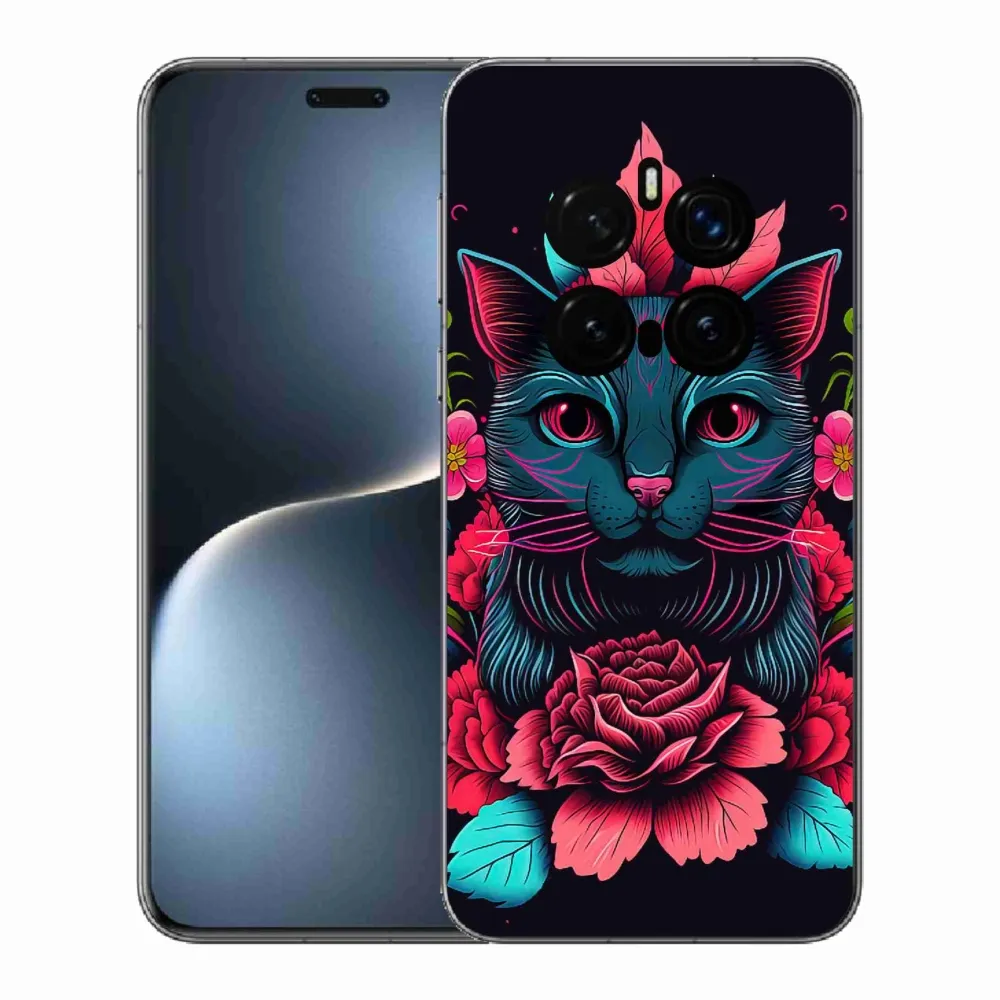 Rugalmas zselés tok mmCase a Honor Magic 7 Pro 5G képével - virágok és macska