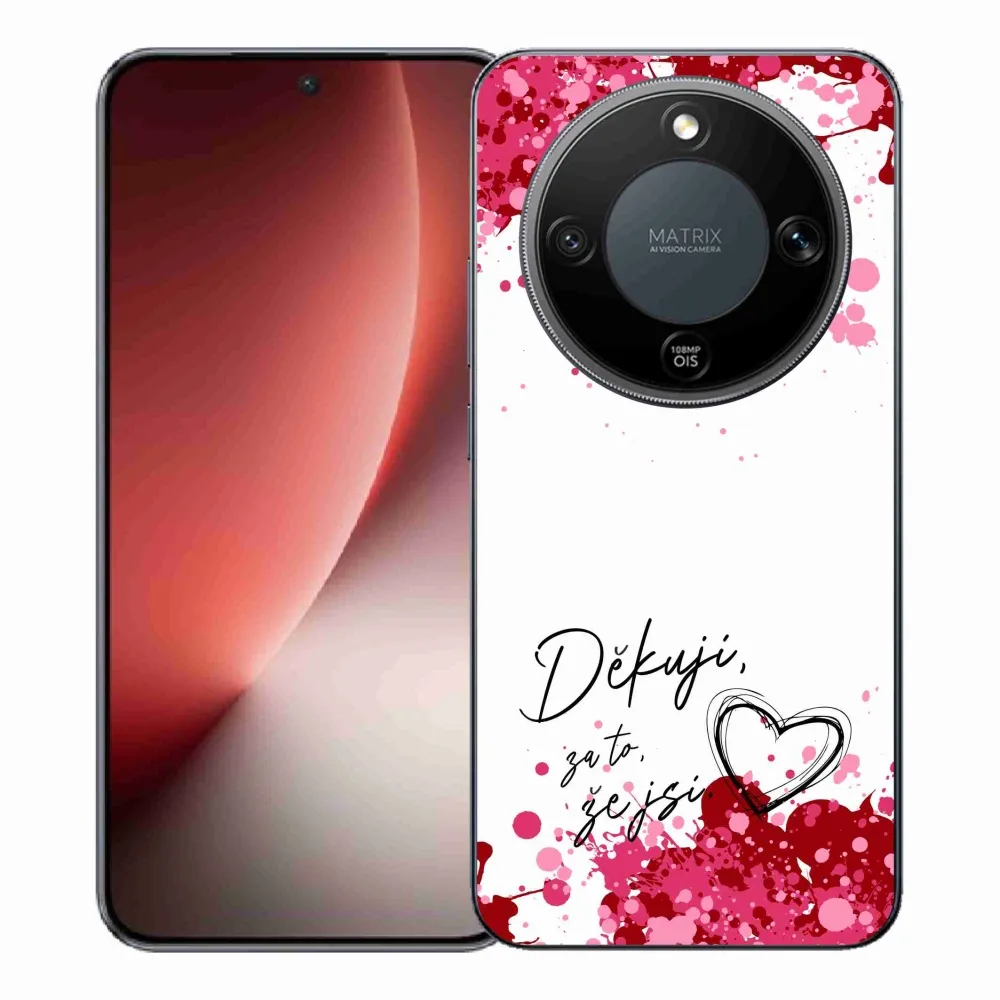 Rugalmas zselés tok mmCase a Honor Magic 8 Lite 5G képével - szerelem szöveg 2 fehér háttérrel
