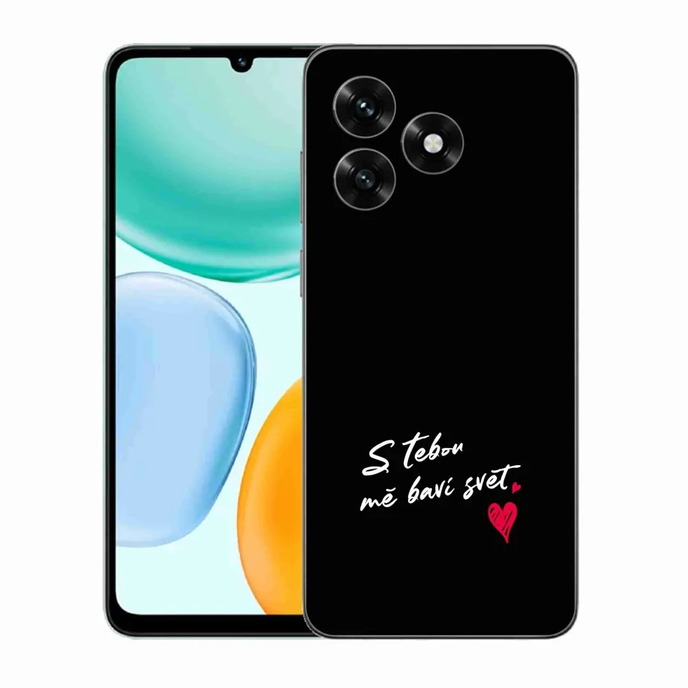 Rugalmas zselés tok mmCase a Honor X5c Plus képével - szerelmes szöveg 1 fekete háttérrel