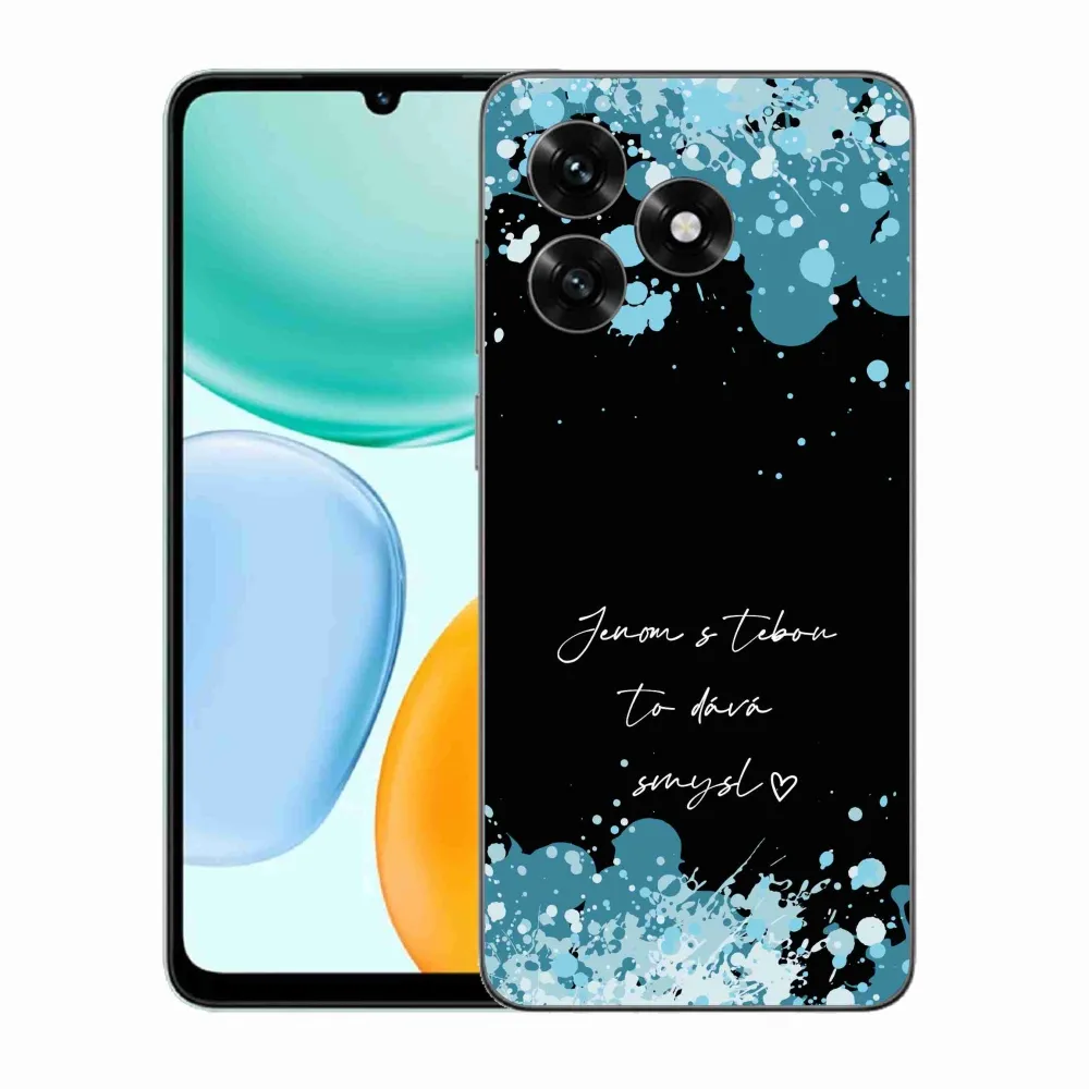 Rugalmas zselés tok mmCase a Honor X5c Plus képével - szerelem szöveg fekete háttérrel