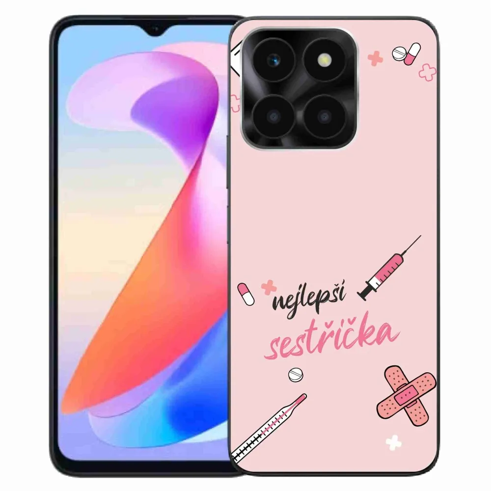 Rugalmas zselés tok mmCase a Honor X6a képével - a legjobb kishúg rózsaszín háttérrel