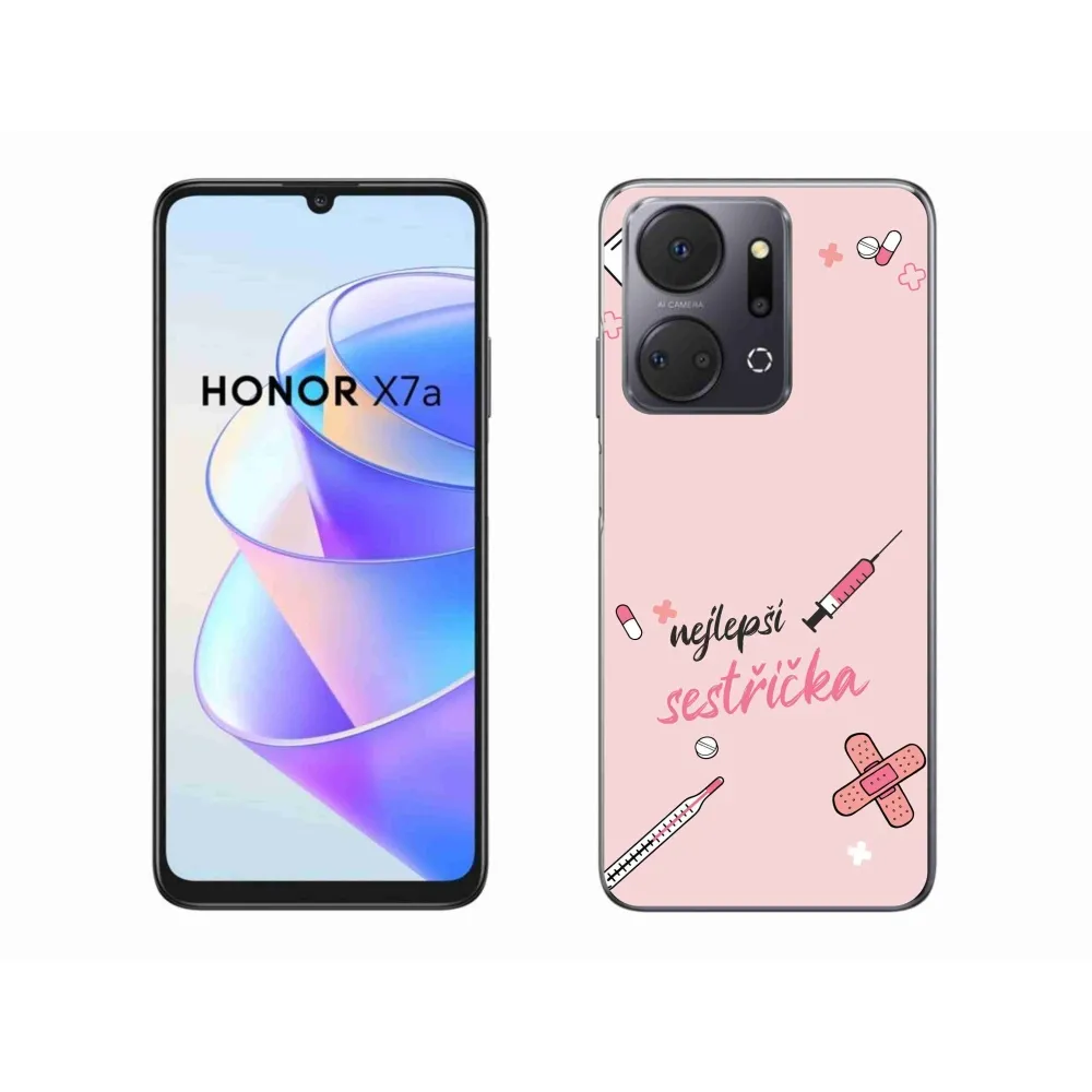Rugalmas zselés tok mmCase a Honor X7a képével - a legjobb kishúg rózsaszín háttérrel
