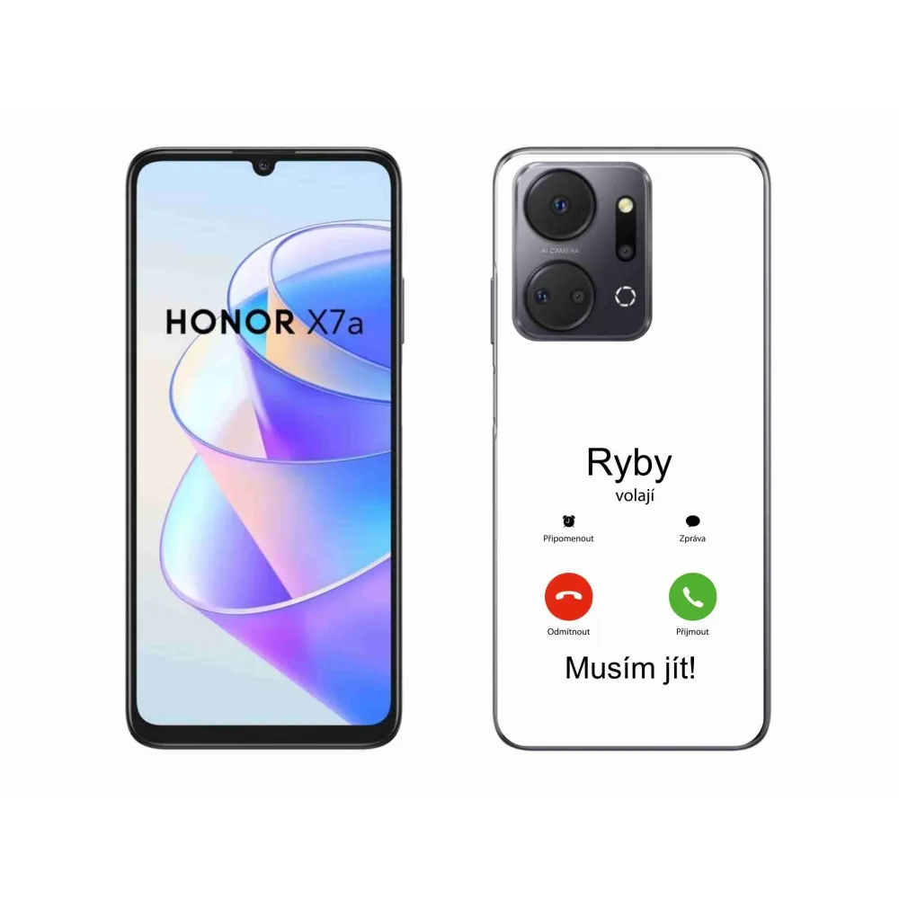 Rugalmas zselés tok mmCase a Honor X7a képével - hal hívás fehér háttérrel
