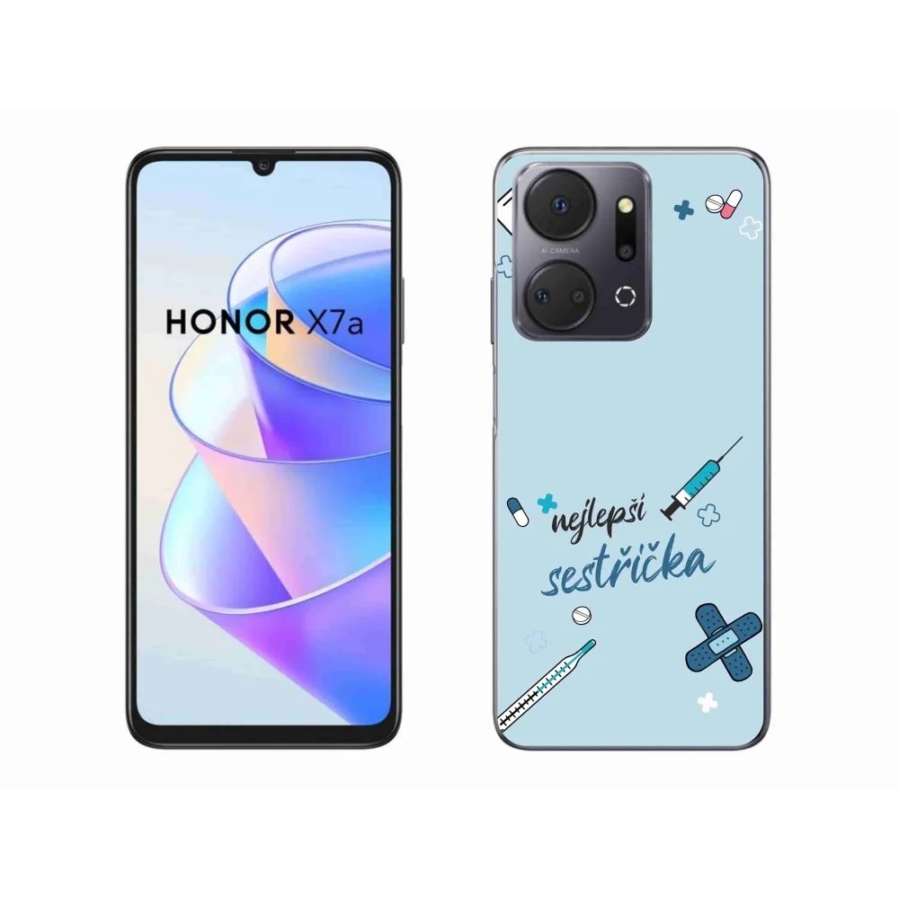 Rugalmas zselés tok mmCase a Honor X7a képével - a legjobb kishúg kék háttérrel