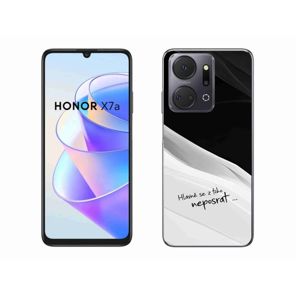 Rugalmas zselés tok mmCase a Honor X7a képével - vicces szöveg 13 fekete-fehér háttérrel