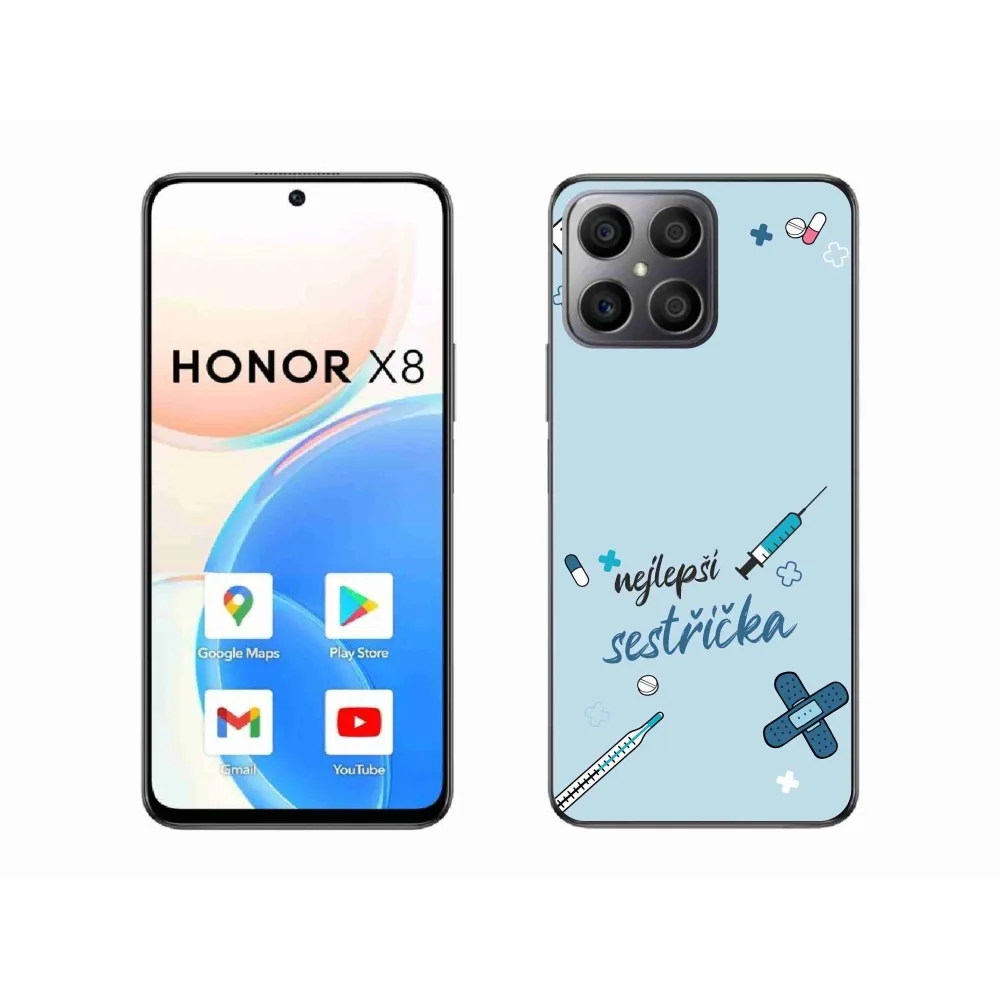 Rugalmas zselés tok mmCase a Honor X8 4G képével - a legjobb kishúg kék háttérrel