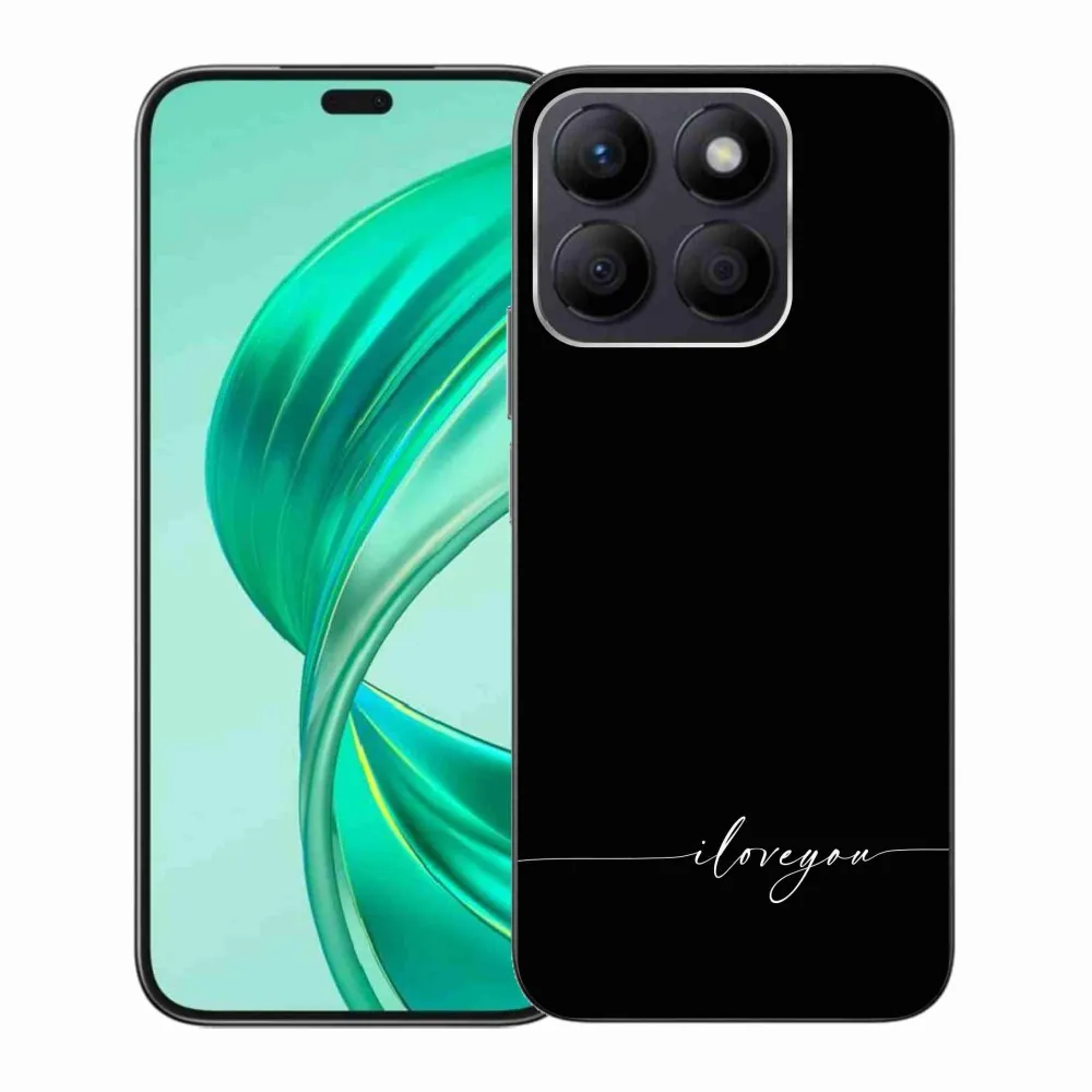 Rugalmas zselés borító mmCase a Honor X8b képével - I love you fekete háttérrel
