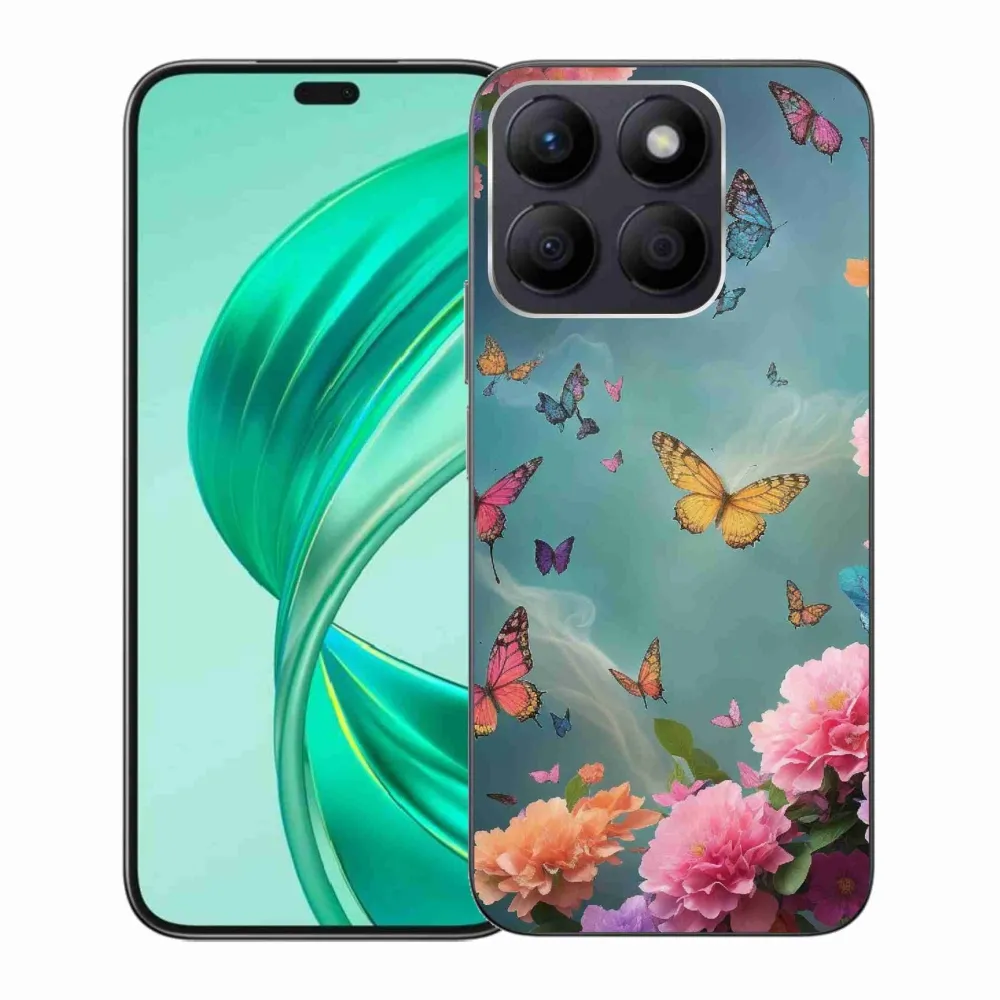 Rugalmas zselés tok mmCase a Honor X8b képével - színes virágok és pillangók