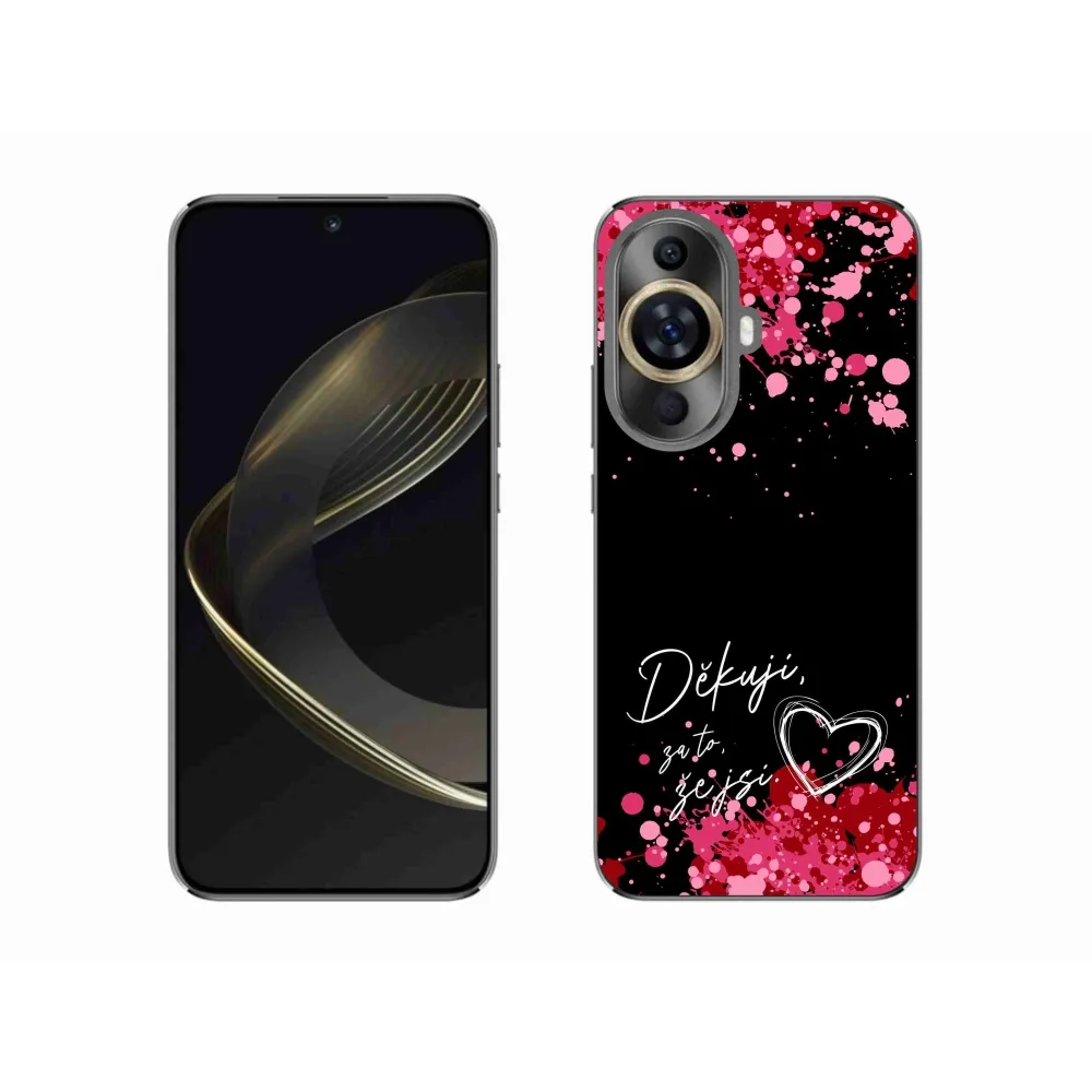 Rugalmas zselés tok mmCase a Huawei Nova 11 képével - szerelmes szöveg 2 fekete háttérrel