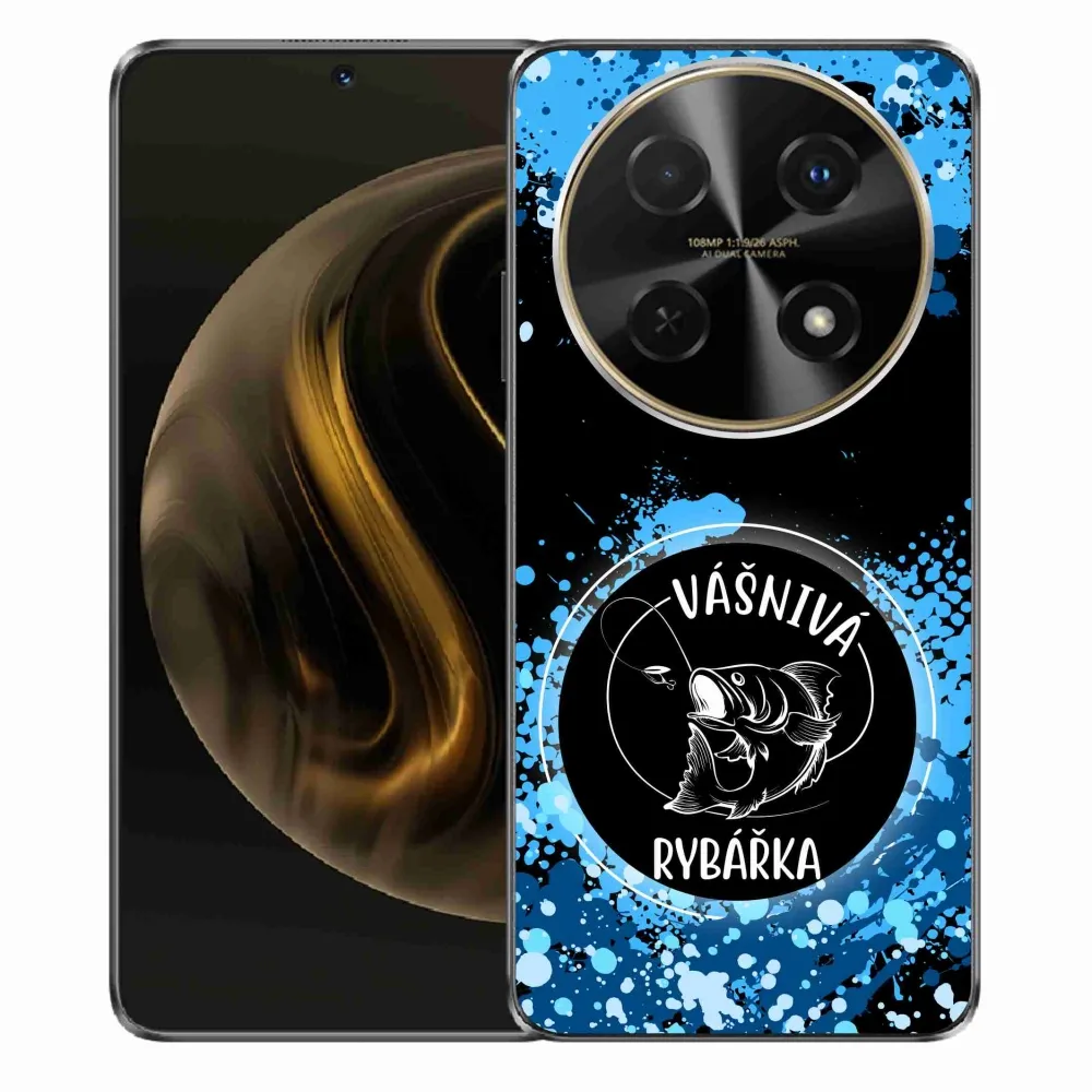 Rugalmas zselés tok mmCase a Huawei Nova 12i képével - szenvedélyes halásznő fekete háttérrel