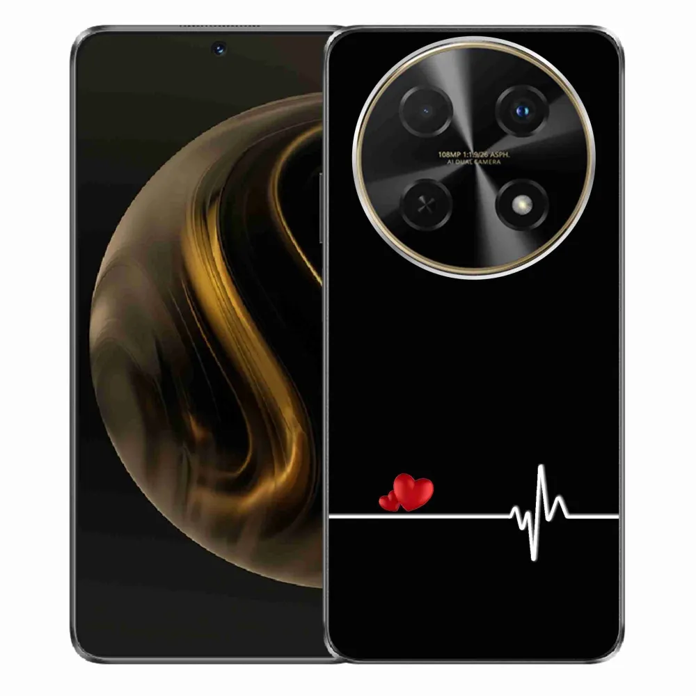 Rugalmas zselés tok mmCase a Huawei Nova 12i képével - szív és szívverés fekete háttérrel