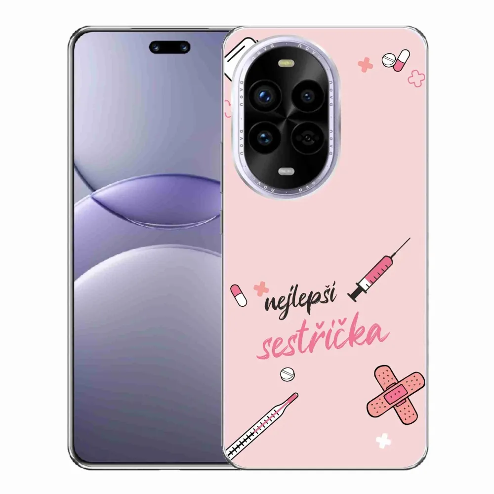 Rugalmas zselés tok mmCase a Huawei Nova 13 Pro 5G képével - a legjobb kishúg rózsaszín háttérrel